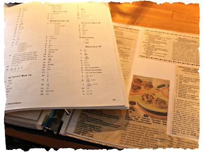 Here's a peek at reality...on the counter along with my recipe notebook is the math answer key, as Bekah was reading off her answers as I baked.